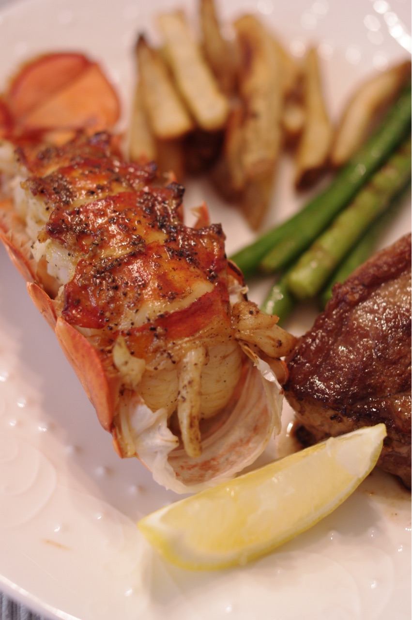 帰宅後は、ジャスティンのリクエストで、ロブスターとステーキを家で。