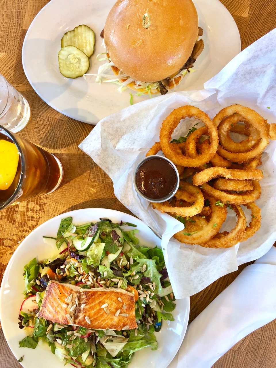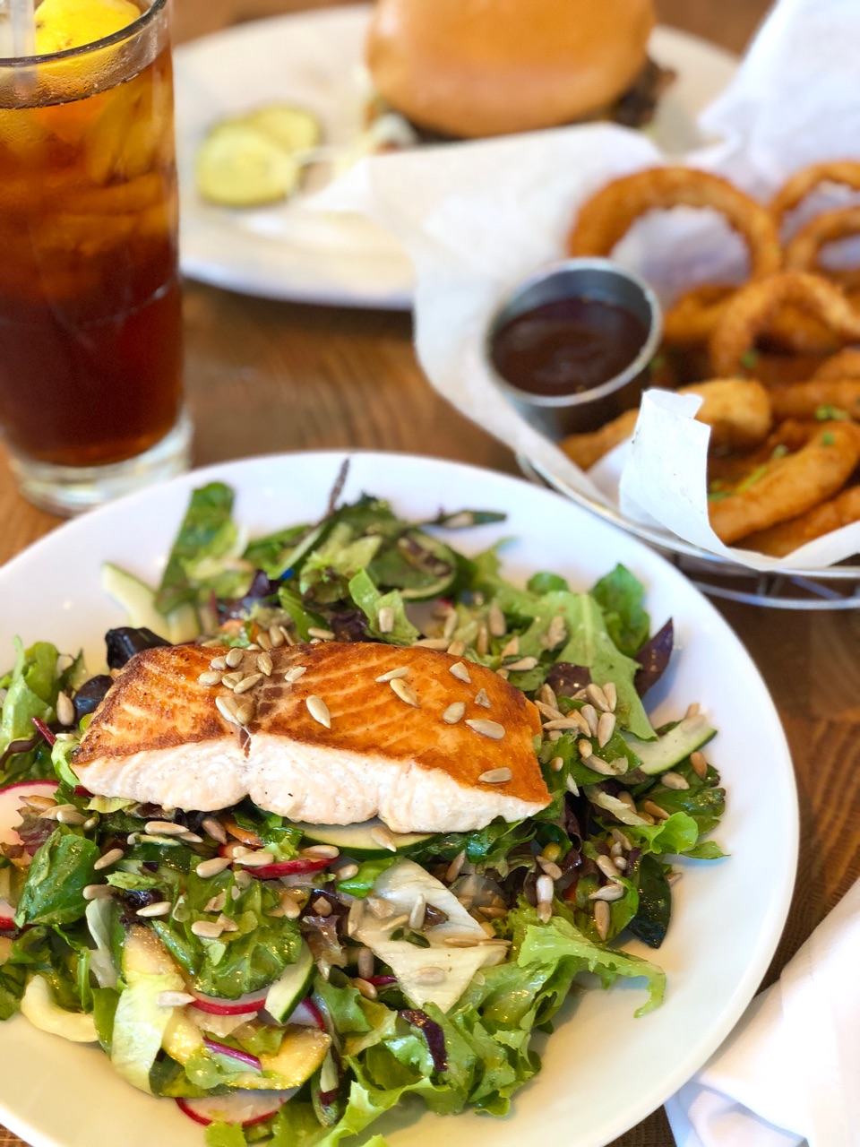 そしてAmerican Wagyu Burgerというものが新しくメニューにあったので、ジャスティンはそのWagyu Burgerをオーダー(メニューには、"American"と付くぐらいなので、本当の"和牛"は使われてないでしょうけど...)、私はSeared Salmon Saladをオーダー↓
