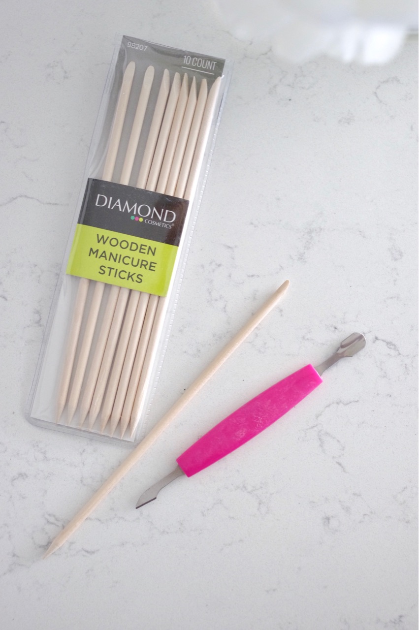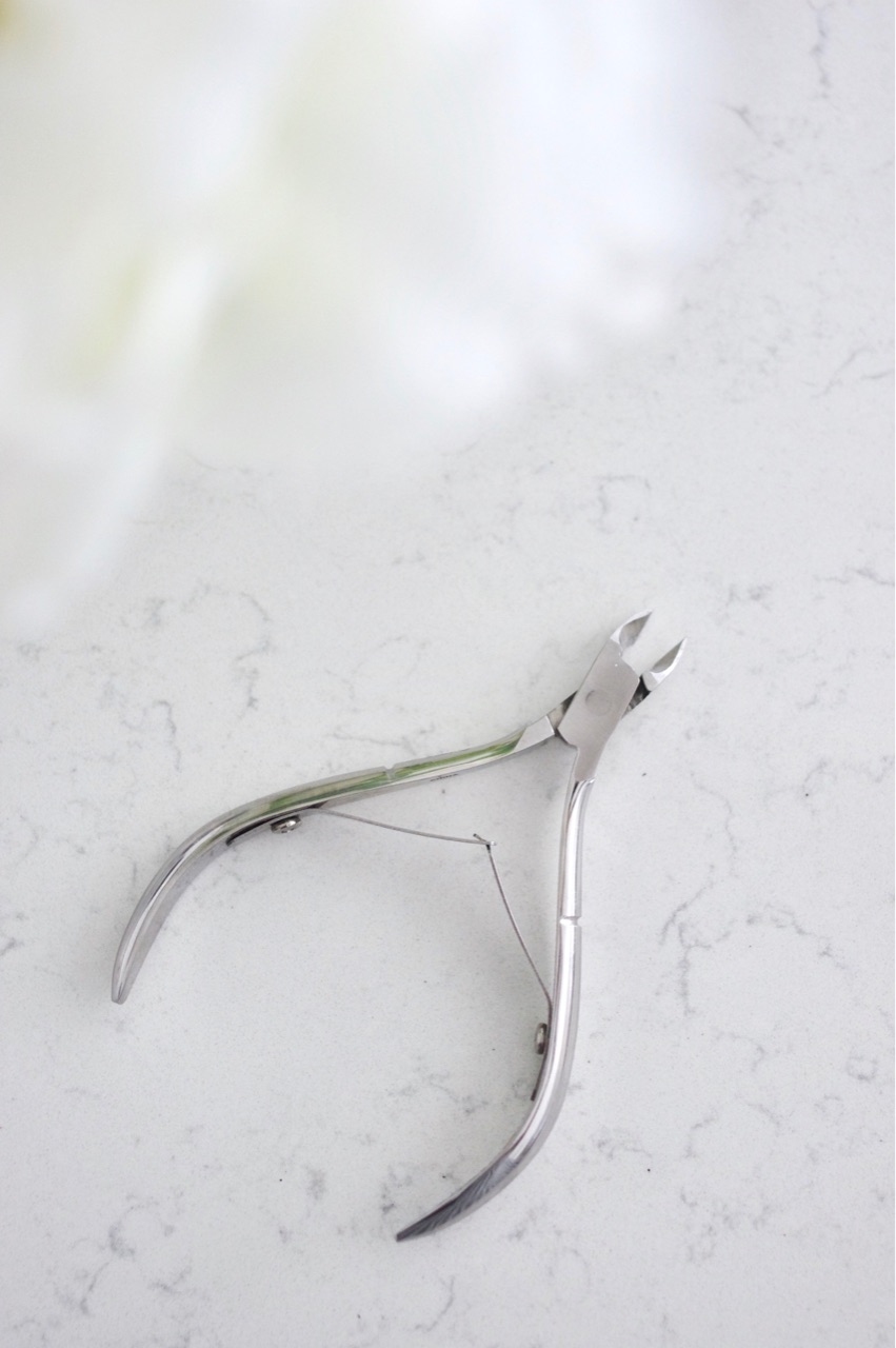 取り除いた後は、メタルプッシャーで甘皮を押し、ニッパーを使って、キューティクルをカット。