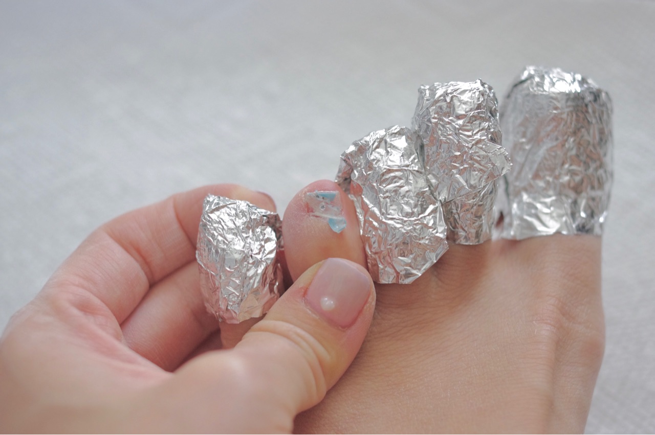 先程も書いた様に、ソフトジェルはジェル上部を削らなくてもオフする事ができるので、アセトンとアルミホイルとコットンがあれば、簡単に取り除く事ができます。
