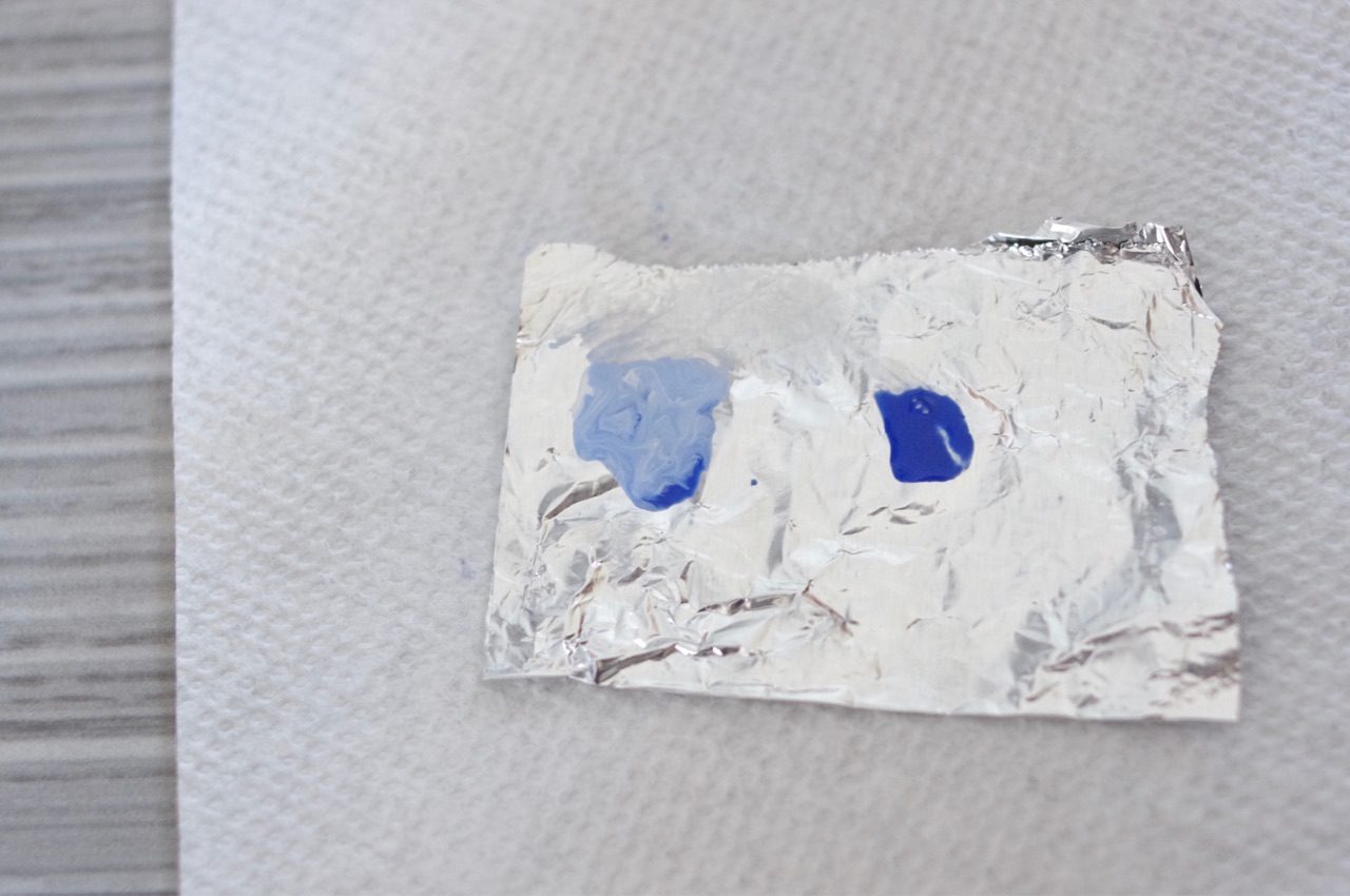 左は青+白(薄い色)、右は青だけのカラー(濃い色を作ります↓
