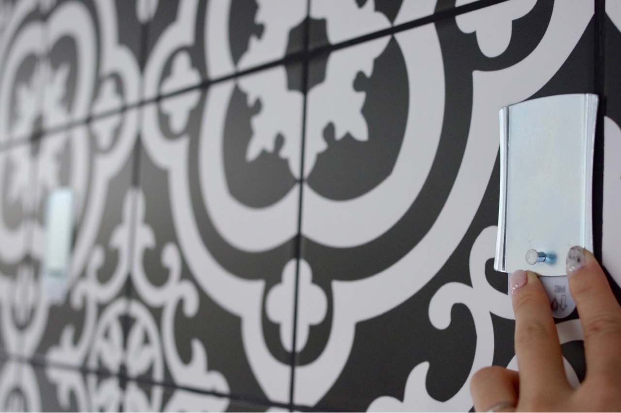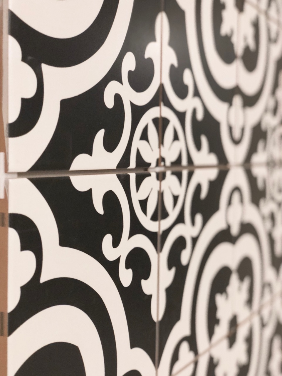 まだ壁に貼っていない、床に置いてあるタイルの置き方まで几帳面↑