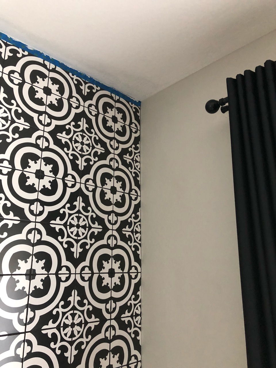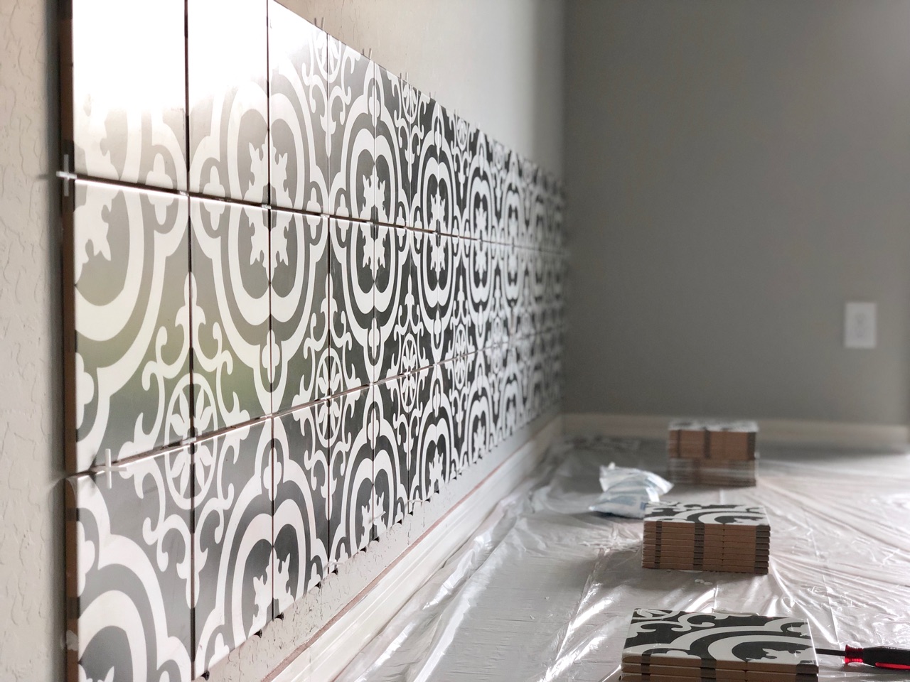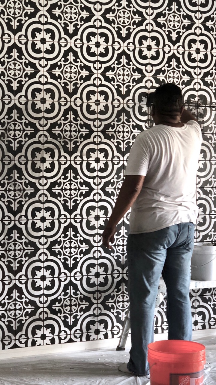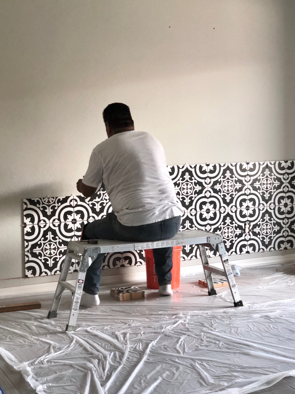 初日はタイルを壁に貼った作業だったので、タイルとタイルの間にはまだグラウト(セメントみたいなもの)は埋め込まれていません↓