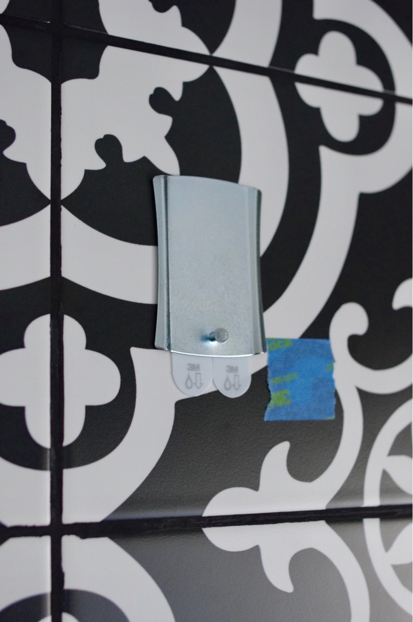 以前のCommandで使ったのは、簡単なマジックテープに両面テープが貼ってあるタイプでしたが(★)、今回の絵は大きめ&重めなので、金属の金具の裏にテープを貼るタイプのものにしました。