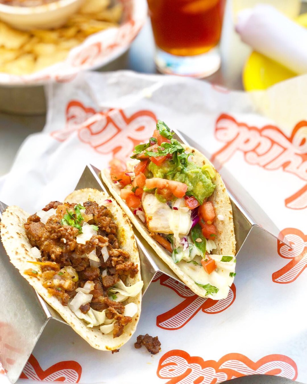 Carne Asada Taco(マリネートされたビーフのタコ)とBaja Fish Taco(グリルドフィッシュタコ)↓