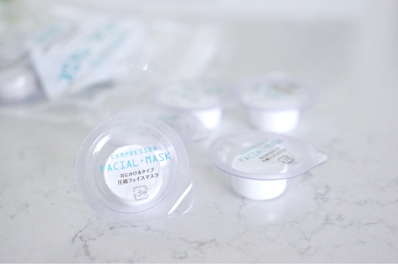 パックを開けて、化粧水で圧縮マスクを少しだけ湿らせてみたら...