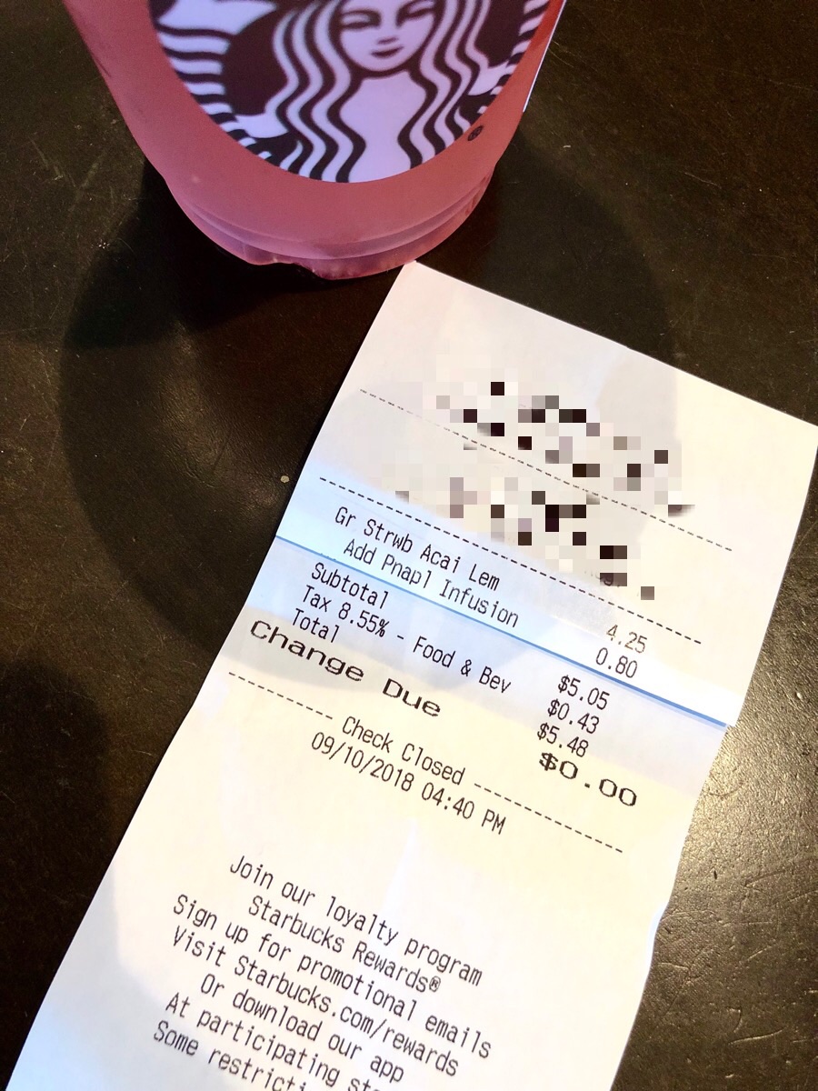 この時のメニューの注文は、お店のメニューに書いてある”Strawberry Acai”ではなく、”Strawberry Acai Lemonade”でオーダーしてください。