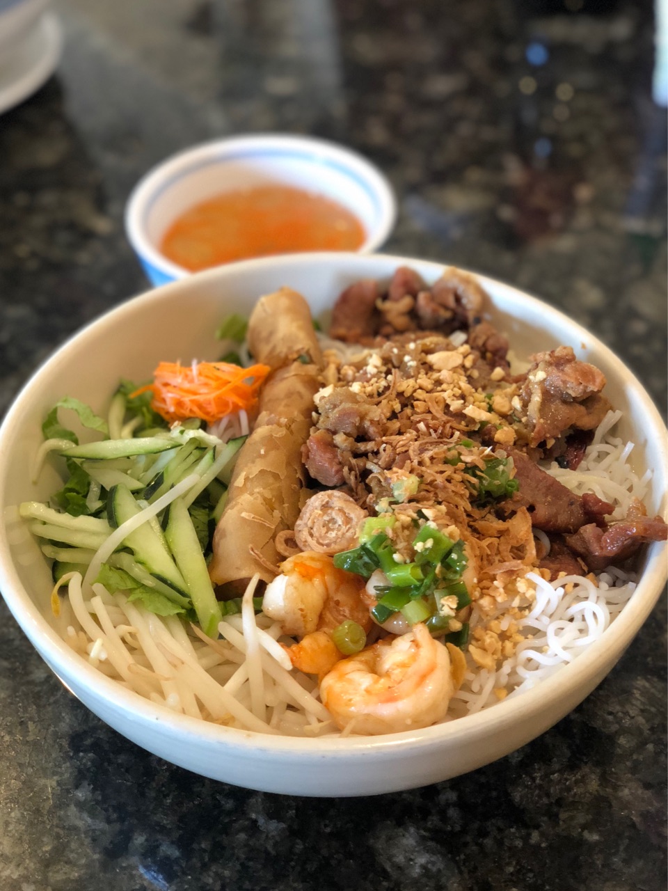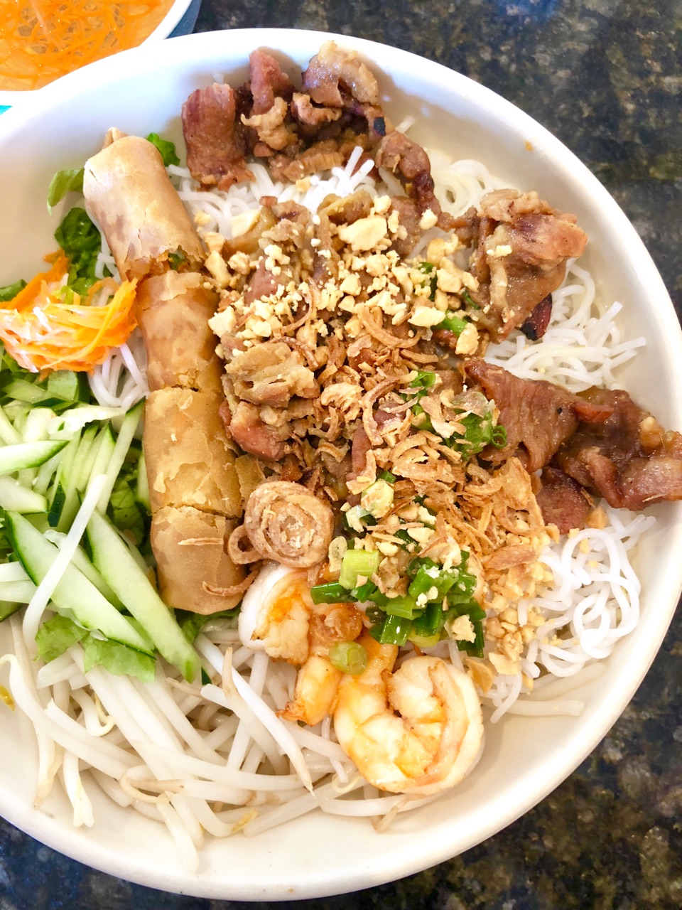オーダーしたのは、海老とマリネートされたポークのバーミセリ