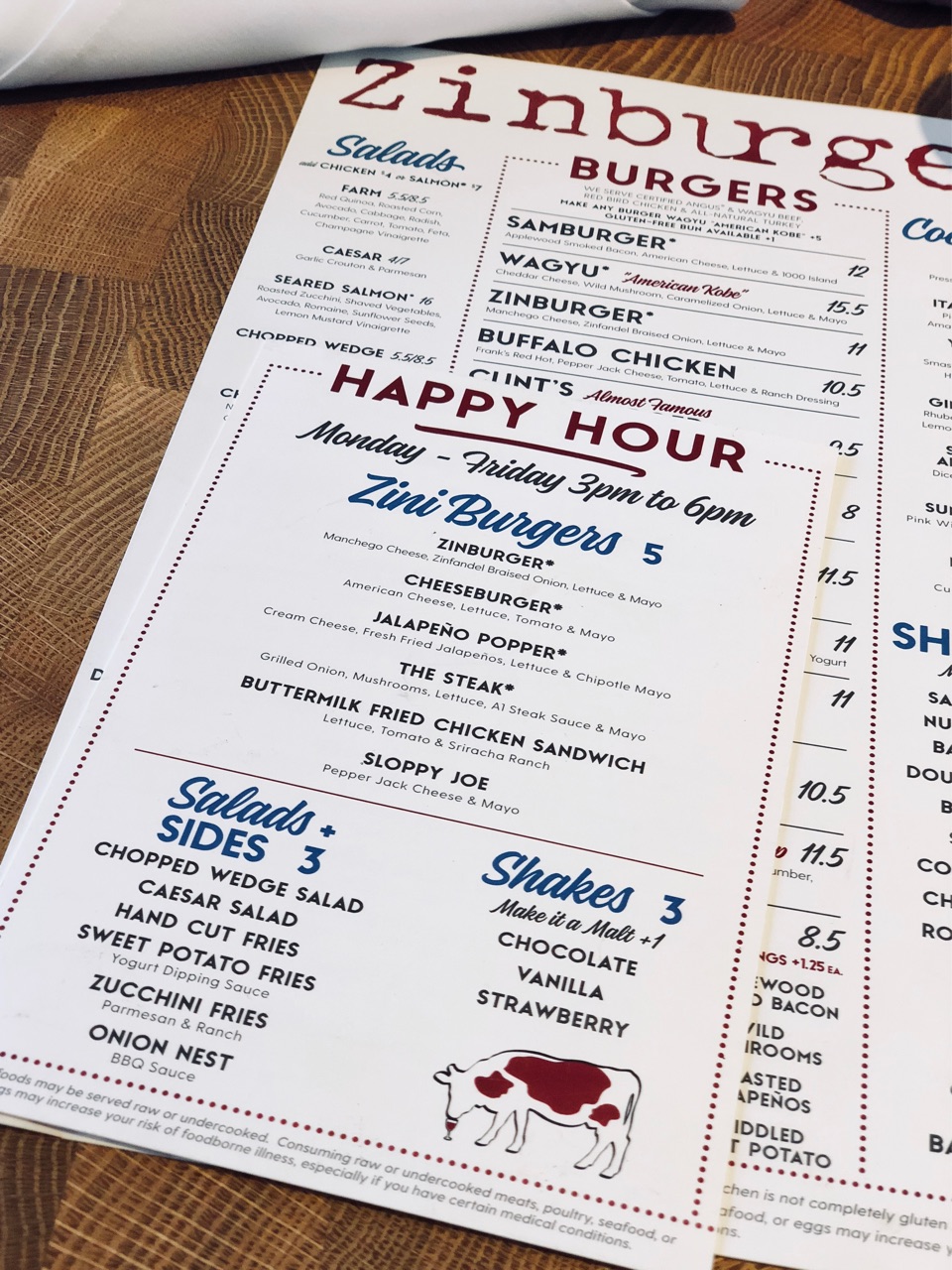いつもはHappy Hourの時間帯は来た事がなかったのですが(毎回、同じ通りのタコスレストラン、Joyrideに行ってしまう...)、ZinBurgerのハッピーアワーメニューはめちゃくちゃ安い