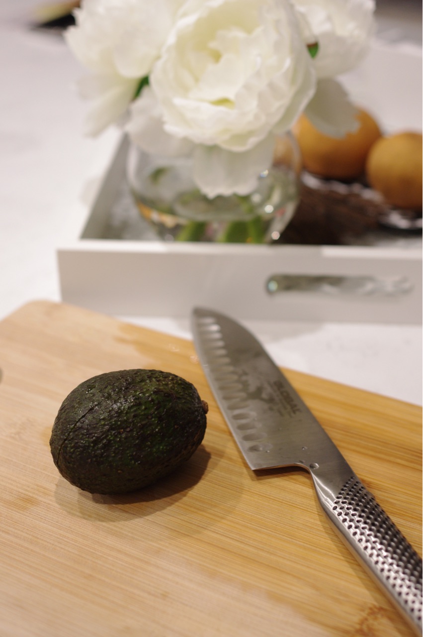 アボカドを半分に切って...