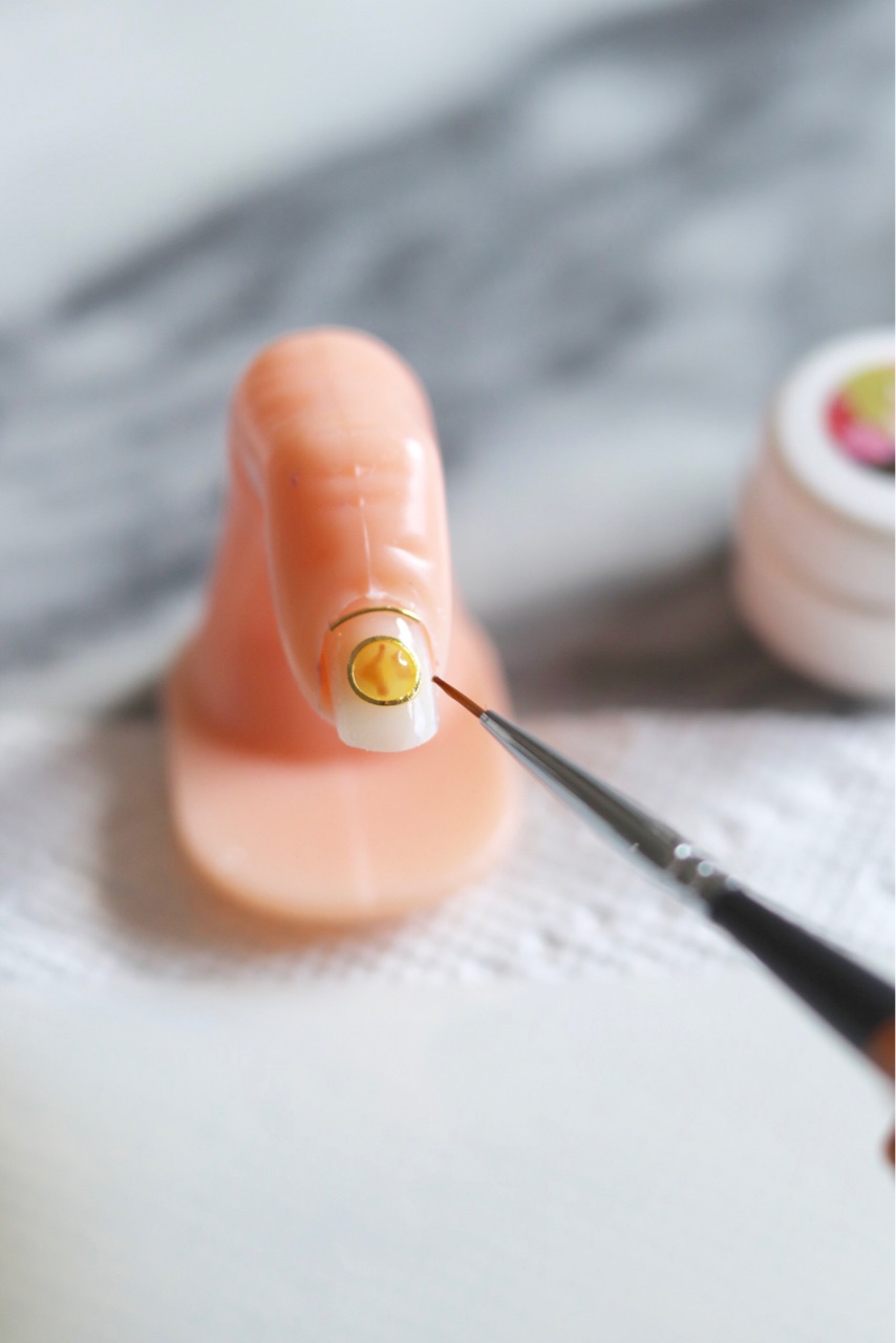 細ブラシで、トップにオレンジを塗ります↓
