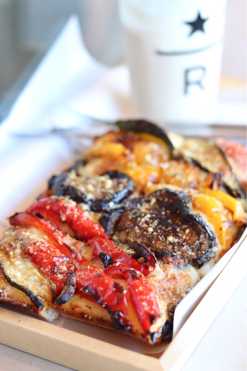ナスとベルペッパー(パプリカ)が乗っていて、フラットピザの様な味でした。