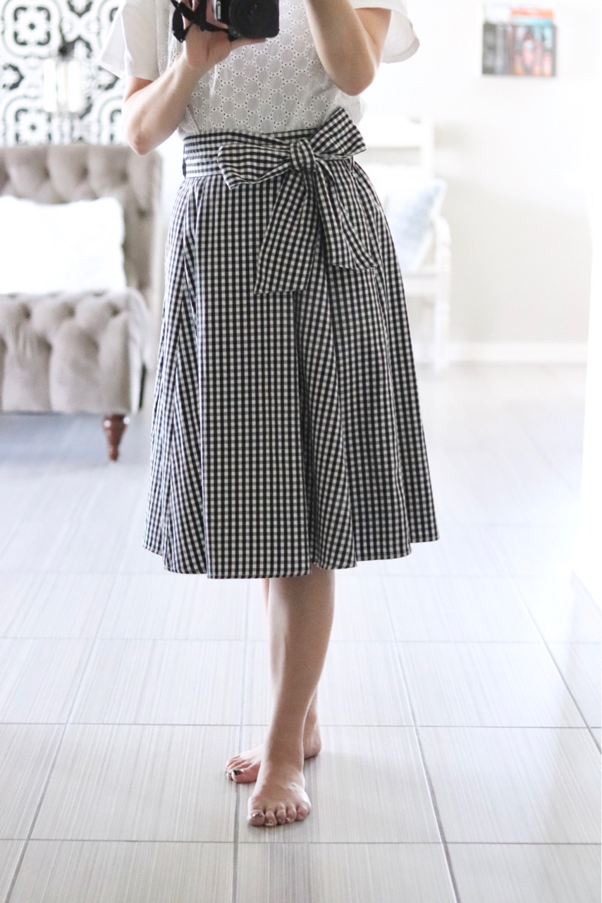 たまたま地元の駅ビルの中にある、Earth Music & Ecologyの前を通ったら、ギンガムチェックのスカートが目に入り、しかも色々なスカートの長さが選べました