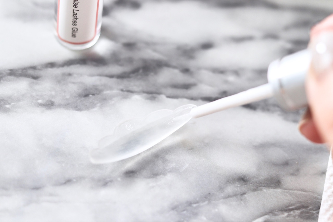 ③アイパッドの裏にFalse Lashes Glue(❺)を使って、塗ります。