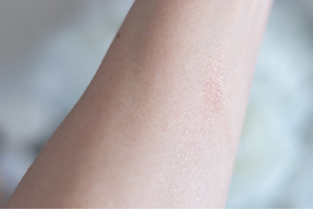 上の写真は指でひと塗り、そしてその後ぼかしましたが、シマーのキラキラが全体に広がりました↓