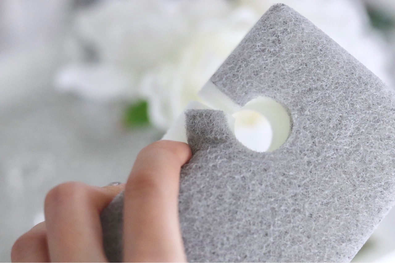 こちらのスポンジは、見た目がグレーと白のモノトーン
