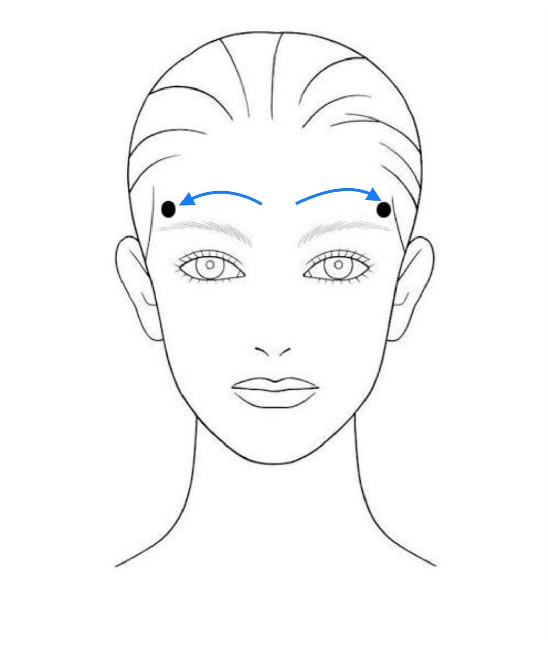 額からこめかみまで指を滑らせ、こめかみで数秒押さえます↓