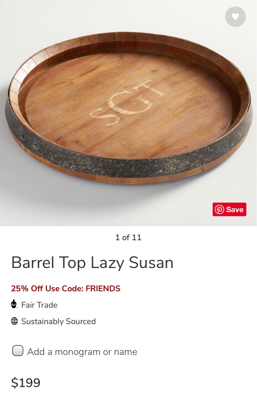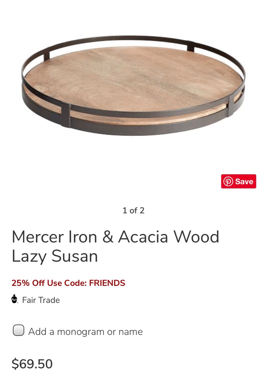 同じ様なデザインのものでPottery Barn(アメリカに拠点を置く、オシャレなホームインテリアストア)で売られているLazy Susanは、少々お高い...↓