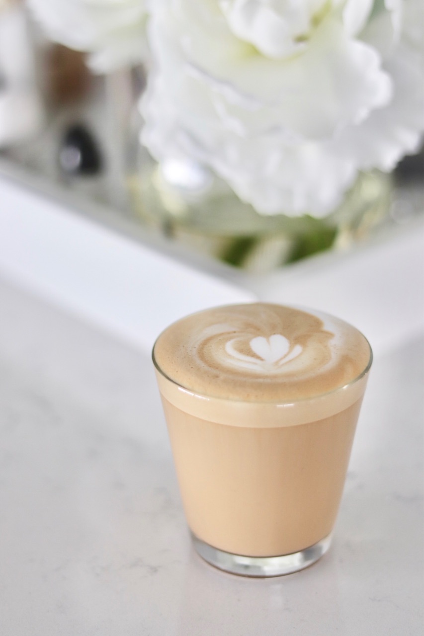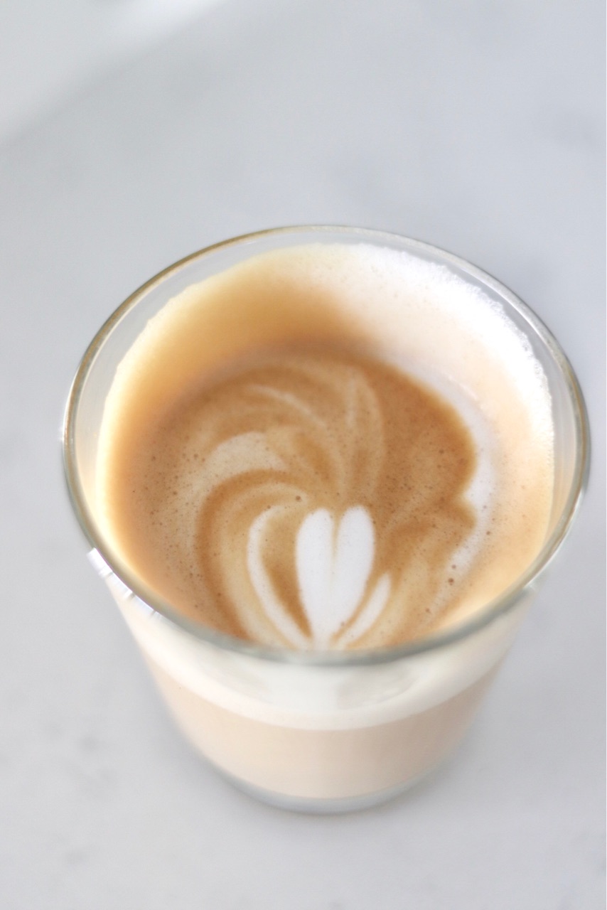 小さいグラスでラテを入れた事がないので、慣れずにハートも小さくなってしまいましたが、オシャレな見た目になりました