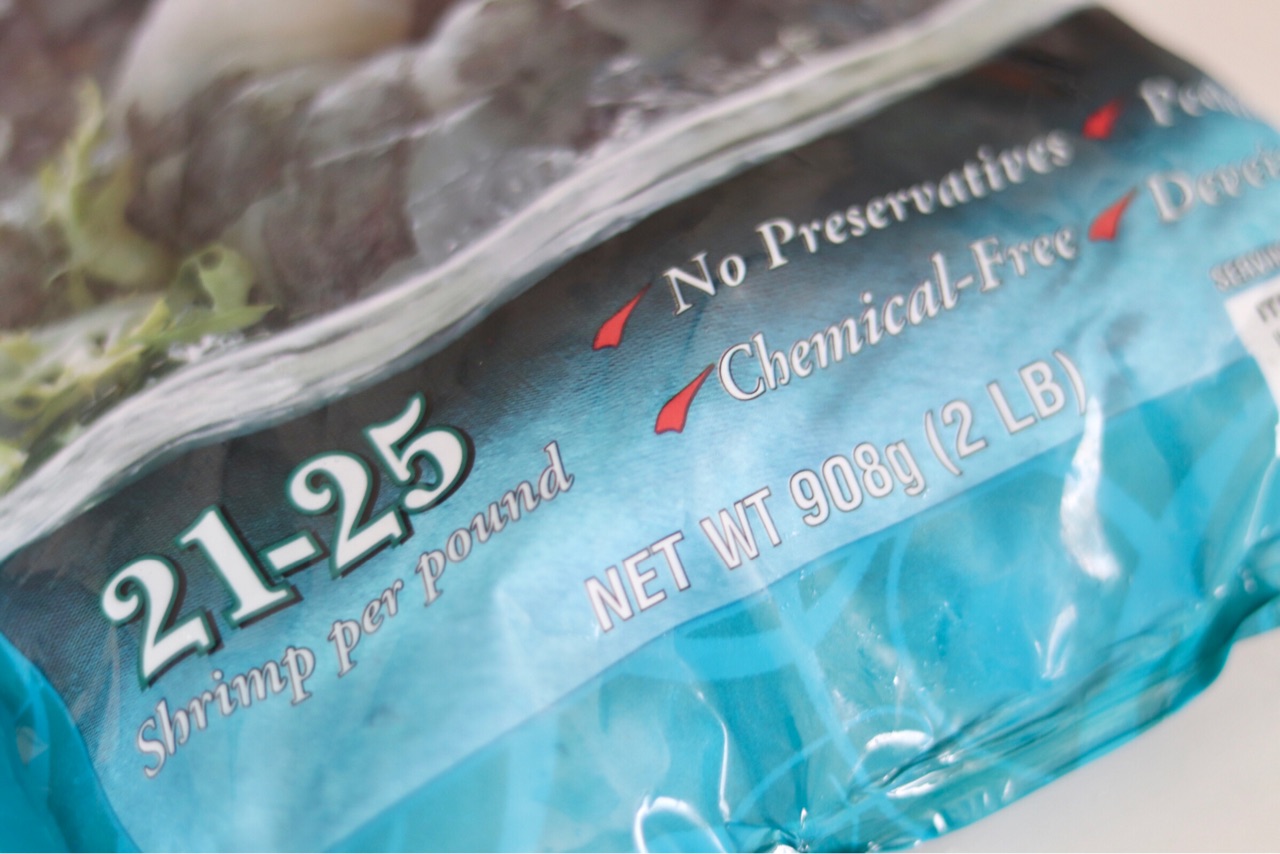 パッケージに書いてありますが、 No Chemical、No Deveined(背わた) です。