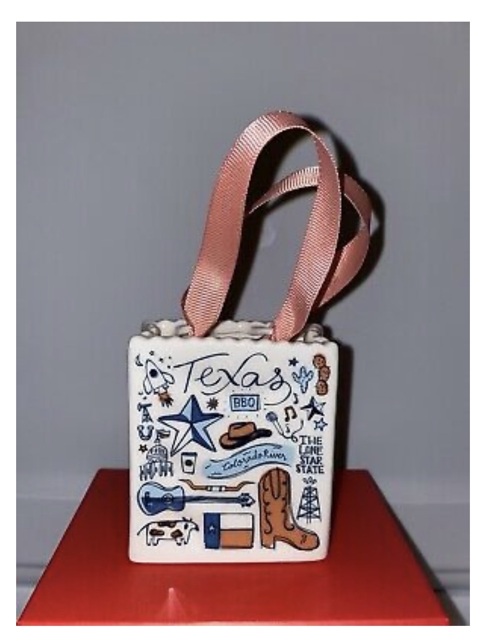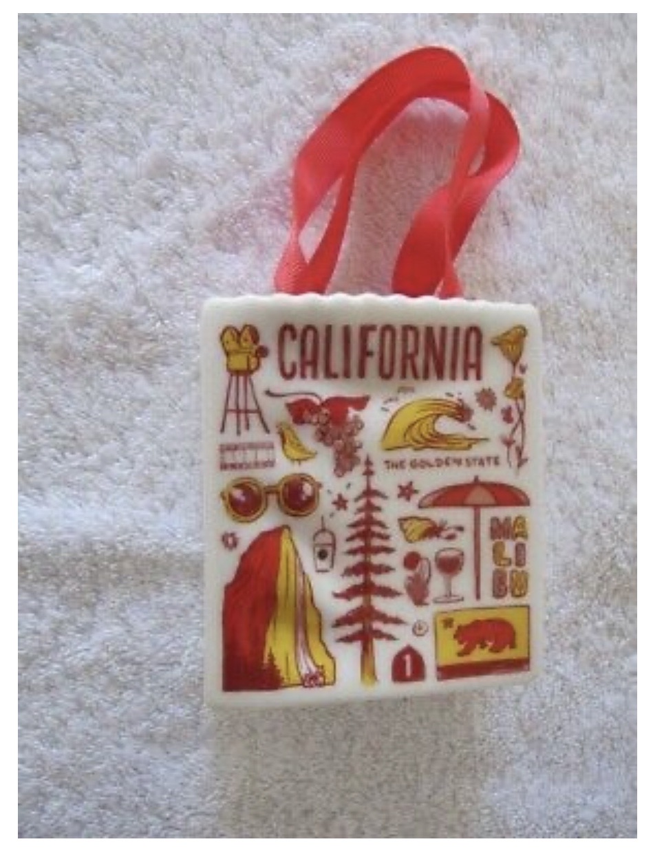 )ebayで売られていた商品によると、こちらがカリフォルニア版のショッピングバッグオーナメント↓