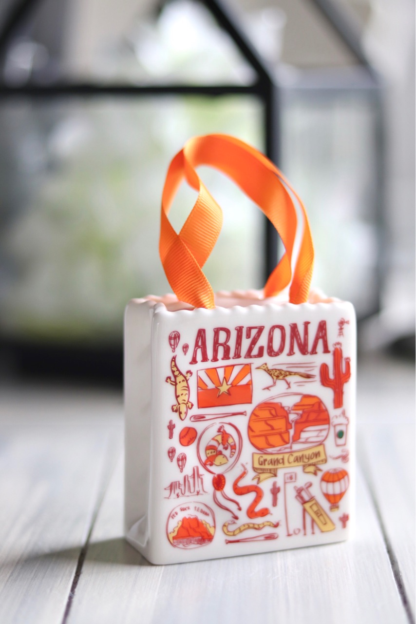 ebayで売られていた商品によると、こちらがカリフォルニア版のショッピングバッグオーナメント↓