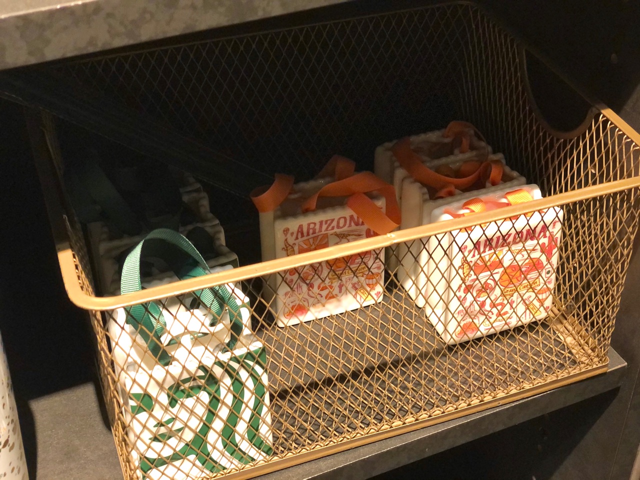 現在在庫がある店舗のみの発売の”You Are Hereコレクション”(今は製造されていません)と、現在発売されている”Been Thereシリーズ”の、エスプレッソマグの大きさのご当地オーナメント↓