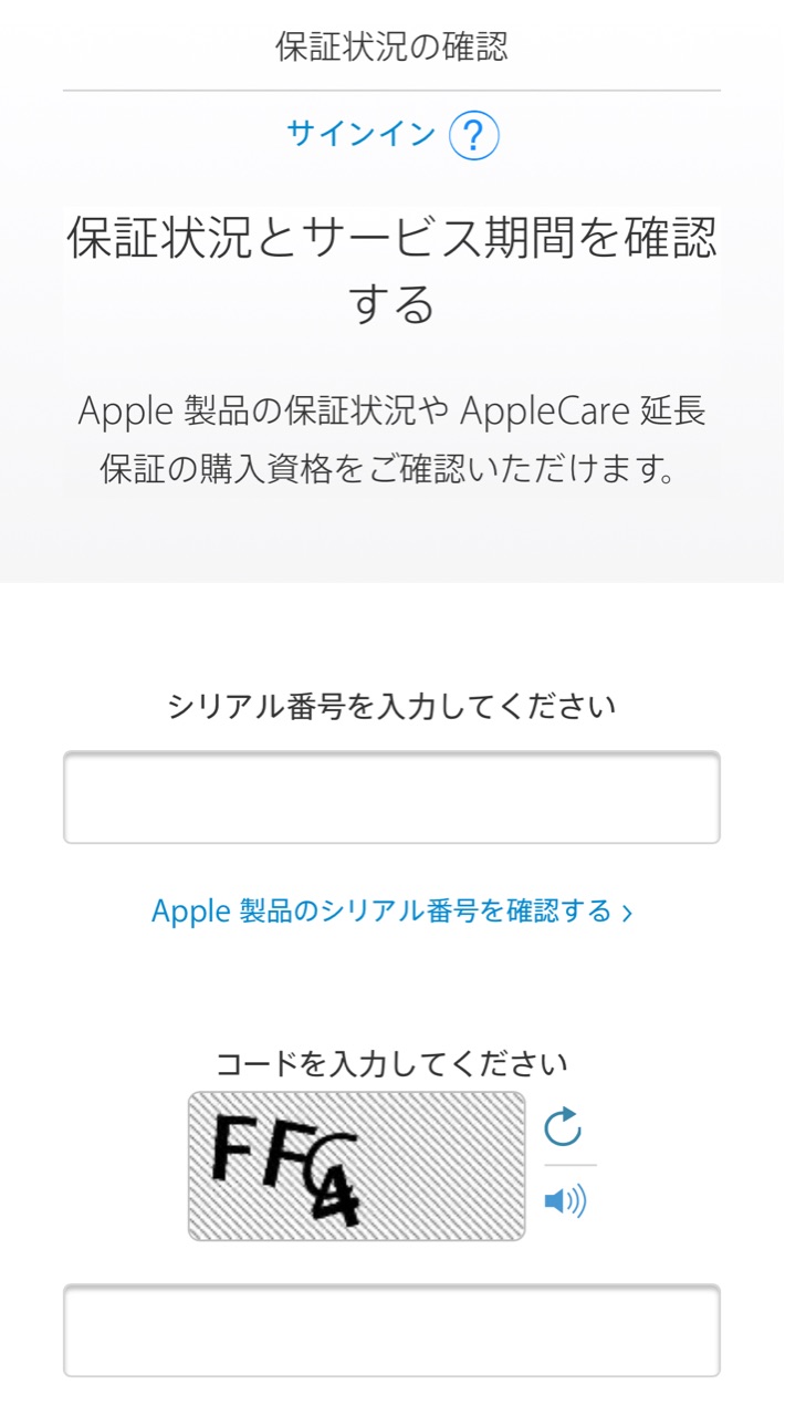 から、”製品の保証状況とサービス期間を確認する”のページに行きます。(オフィシャルHP→★)↓”シリアル番号を入力してください”の所に、先程コピーした番号をペーストし、確認コードを入力、”続ける”を押すと...↓