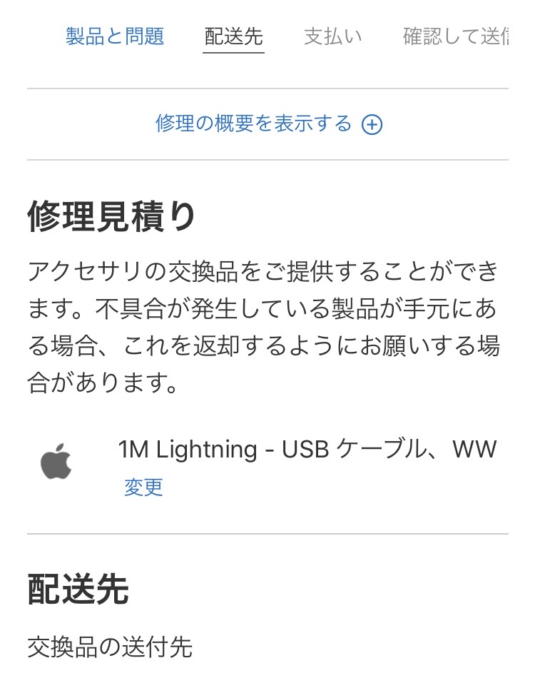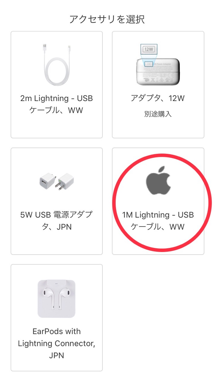 壊れたアクセサリー“1M Lightning ケーブル”を選びます↓