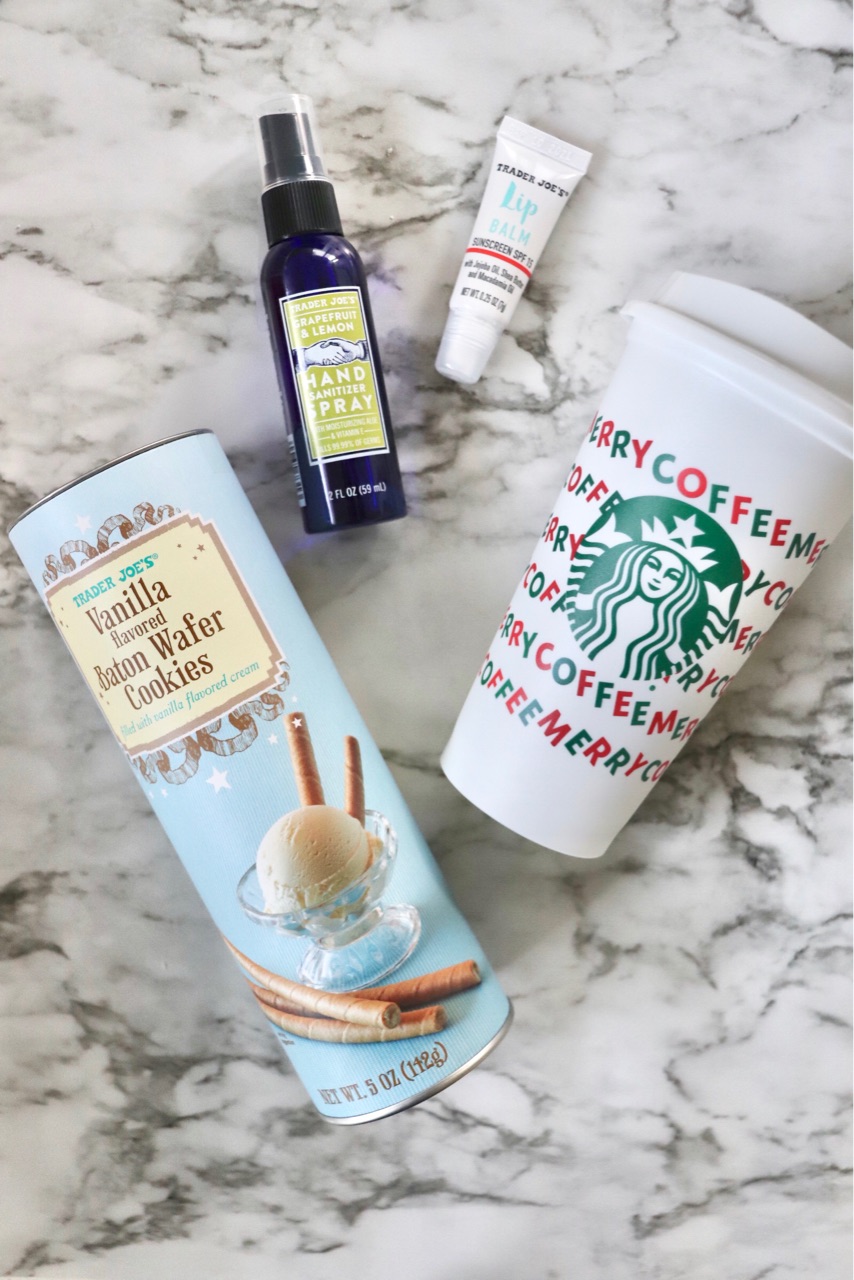 トレジョ(Trader Joe's:全米に展開する、大人気のヘルシー派スーパー)のウェイファークッキー、ハンドサニタイザースプレー、リップスクラブ、スタバUSAのXマス限定のリユーザブルカップ、そしてこちら↓のタピオカを包ませていただきました。