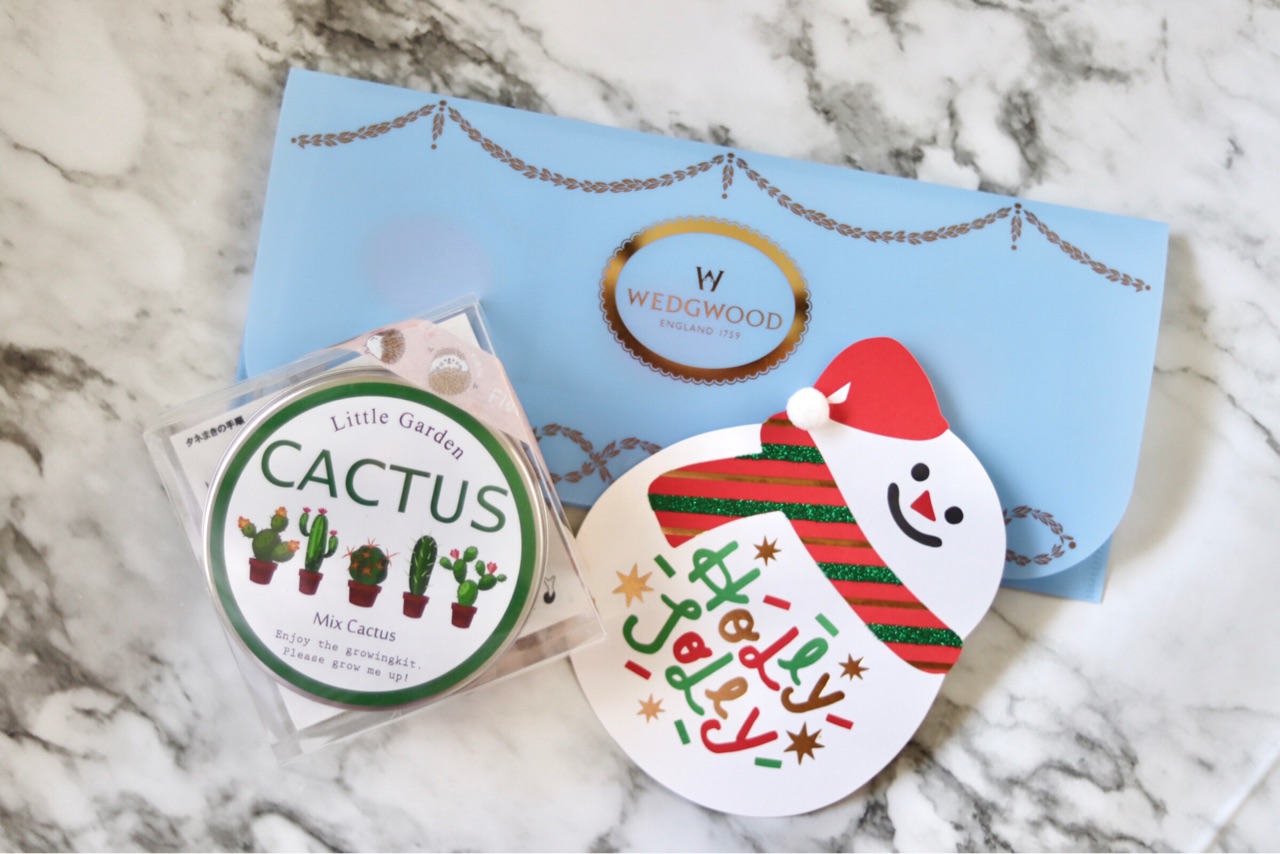 可愛いクリスマスカード、サボテンの種と、WEDGEWOODのティーバッグセット