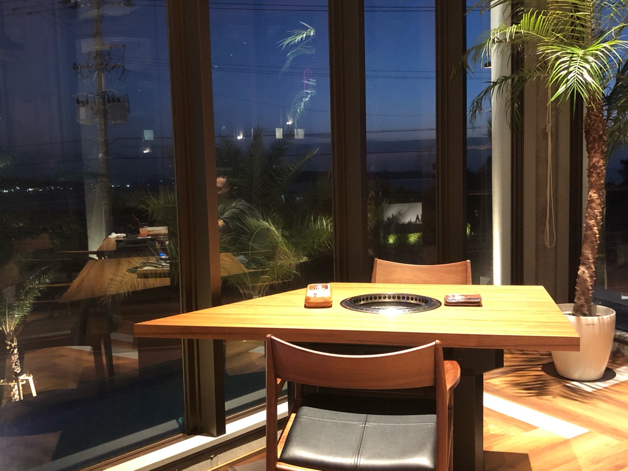 私たちは前日に予約を取ったときに、店員さんに勧められ、1番奥の、東シナ海が見える窓際の2人席のテーブルを取っていただきました。