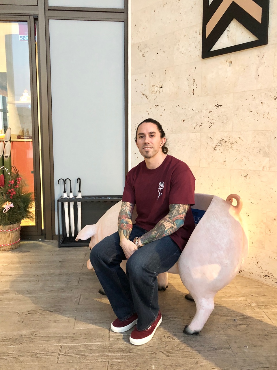 入り口の豚のベンチで、撮影...↓