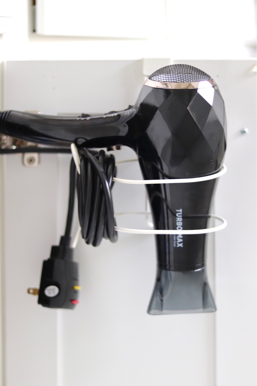 ヘアアイロンホルダーと同じく、こちらのドライヤーホルダーにも、大きなコード用のフックが付いています↓