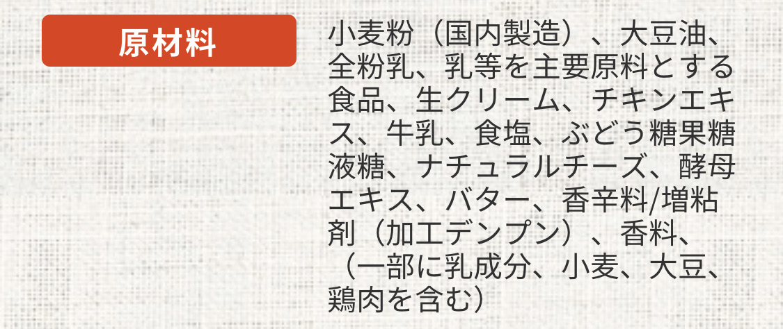 こちらは、ある会社のホワイトソースの原材料↓