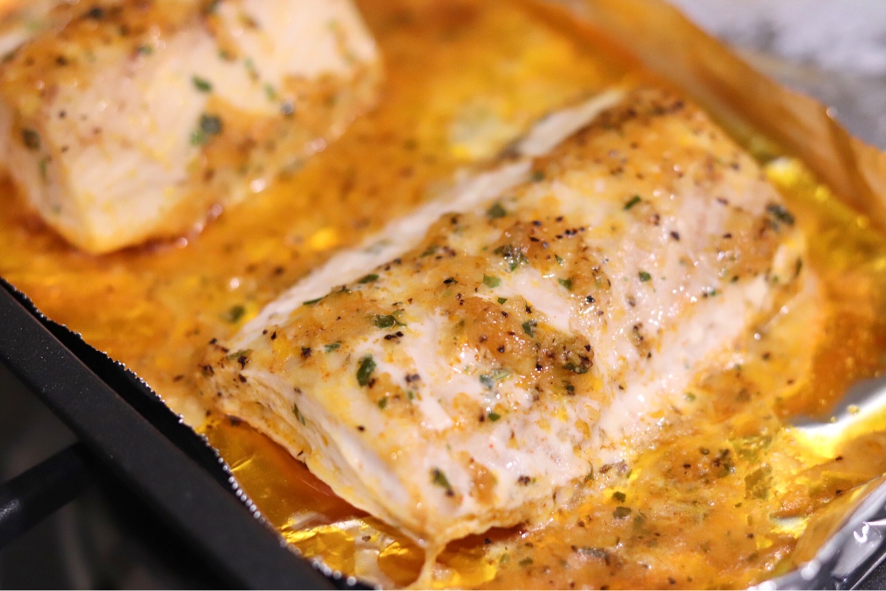 Miso Cod(鱸)の時と同様に、小さめのフォイルで囲いを作って焼いたほうが、ソースの広がりを防げ、焦げません。