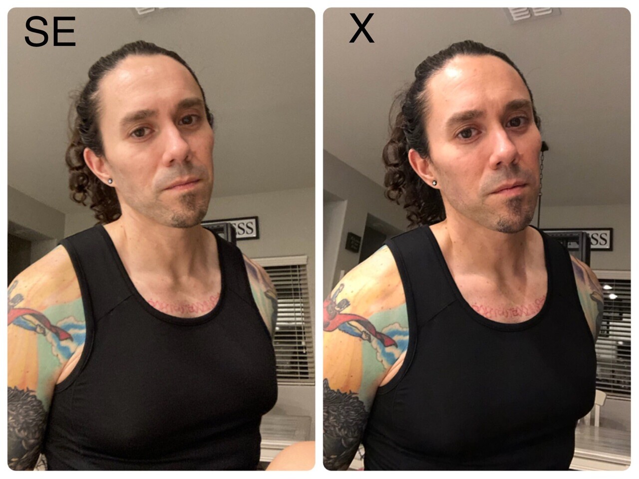 Xは、おでこのテカリ部分が白飛びしていますが、SEは綺麗。