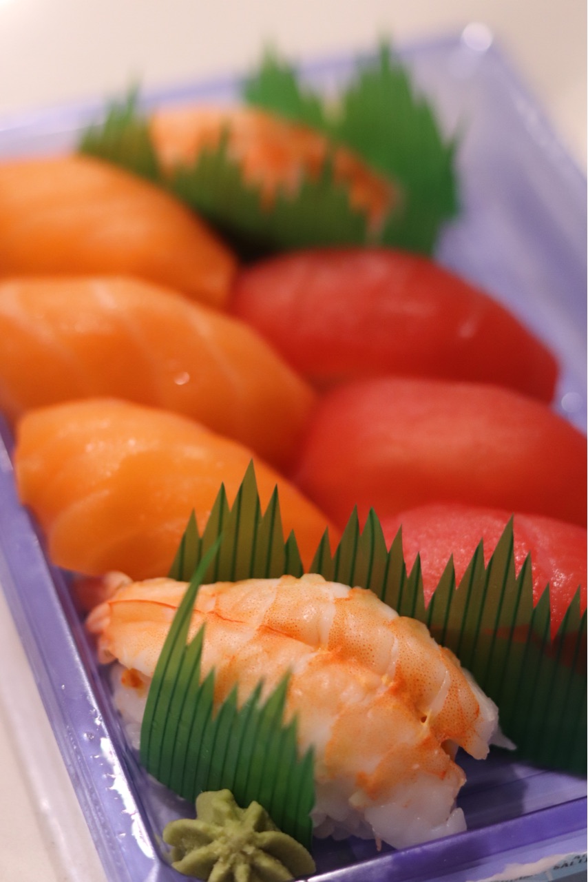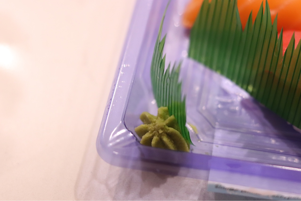 アメリカのお寿司は、ワサビは必ずサイドに置かれています↓