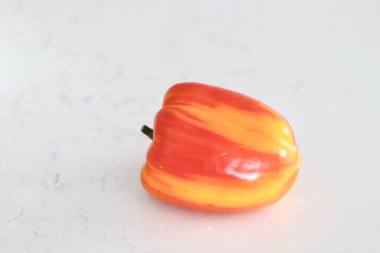 盛り付けの基本となる緑・黄色・赤のうち、このベルペッパーには2色も既に入っているので、このベルペッパーを使うだけで料理が華やかに見える様にしてくれるのが、お気に入り。