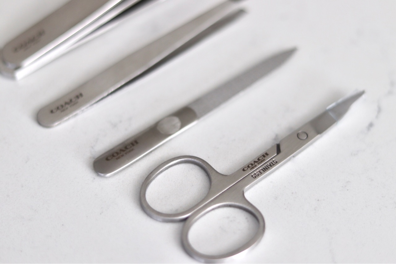 爪切り、爪ヤスリ、ネイル用ハサミ、毛抜きがセットになった、グルーミングキット。