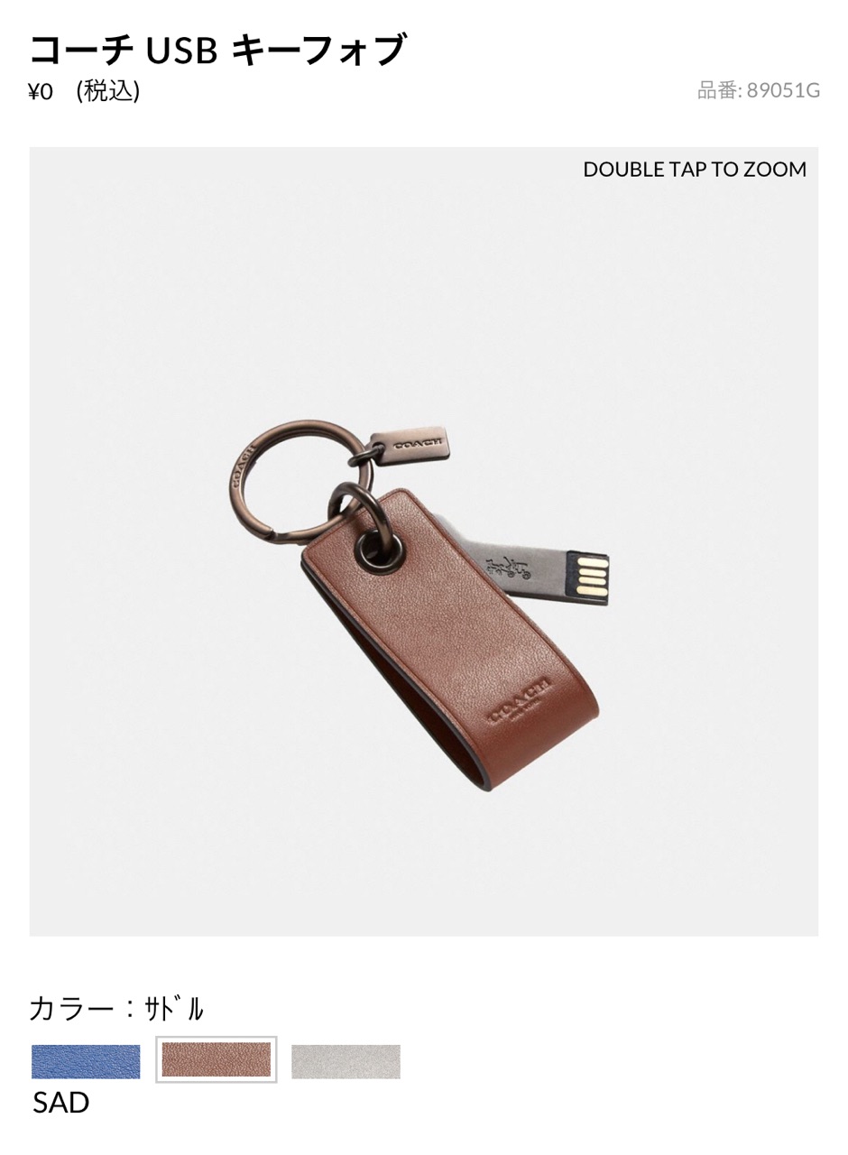 なんと現在、COACHジャパンで35,000円(税込)以上購入すると、先着でコーチUSBキーフォブ(8GB)をプレゼントだそうです!!
