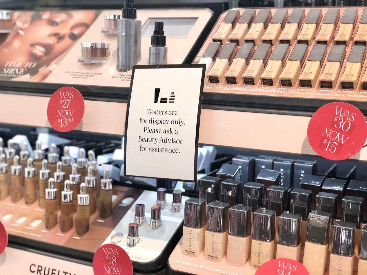 SEPHORA(全米展開されているコスメストア)は、販売されている全ての化粧品がテスターで試せるのが良い所なのに、「テスターは使わないでください。もしファンデ等の色味を知りたい場合は、スタッフに聞いて」と説明を受けました。