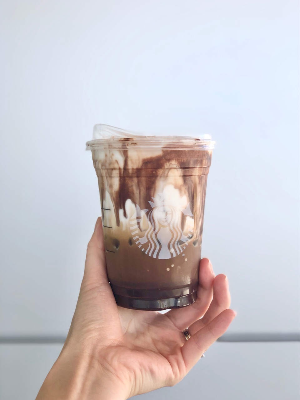 オーダーしたのは、Iced Blonde Cocoa Cloud macchiatoに、Mocha drizzle(チョコソース)をカップのまわりに追加してもらいました。