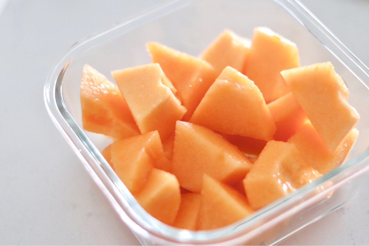 メロンは切っておいて、ガラス容器で保存し、朝にいただきます↓