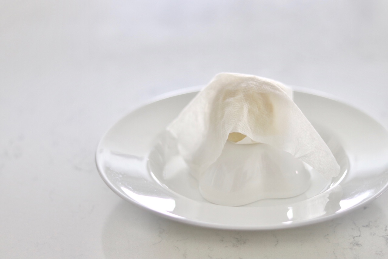 このままチンすると、皮が固くなる部分が出てきてしまう事があるので、水に濡らして軽く絞ったペーパータオルを、肉まんの上に乗せ...↓