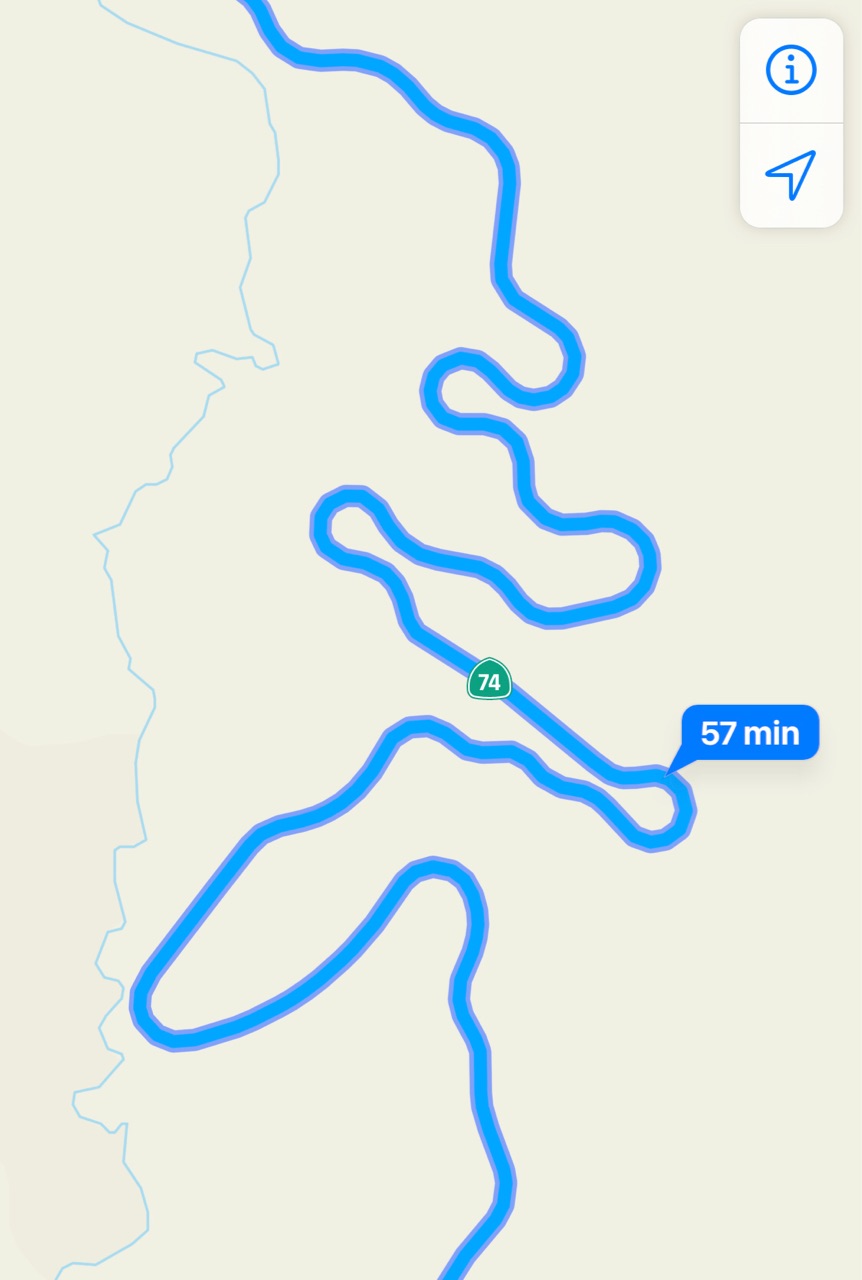 所によっては、落石注意や鹿飛び出し注意のサインもあってハラハラするし、3分毎に携帯のマップの到着時間をチェック…