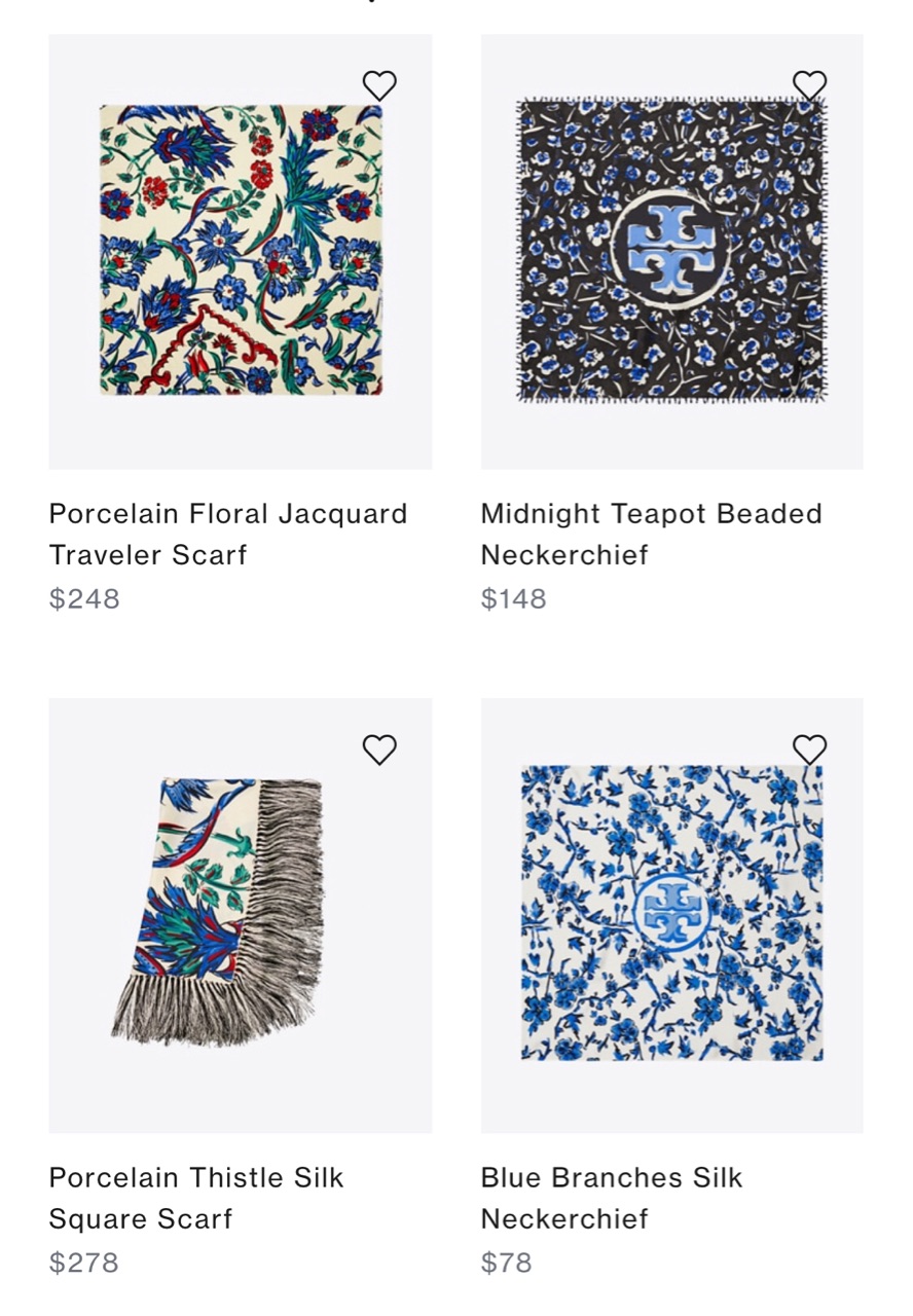 8月下旬に発売されたTory Burchのオンラインの新コレクションには、マスク柄と同じ商品が色々発売されています↓