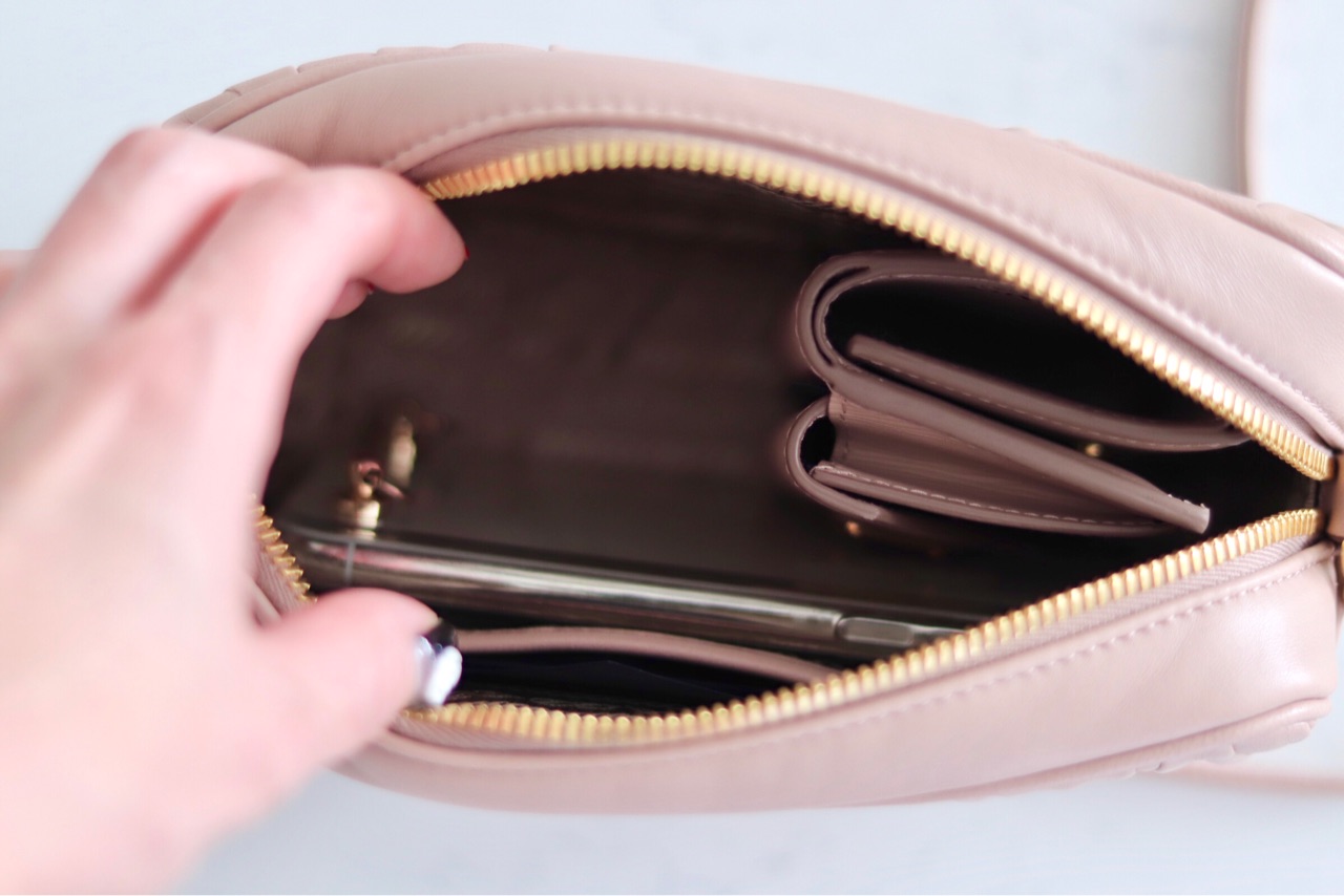 小さなバッグですが、お財布と携帯を入れても、一応まだスペースがあります↓