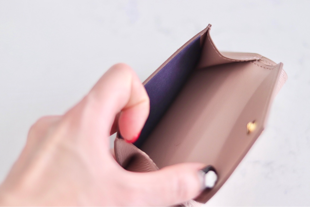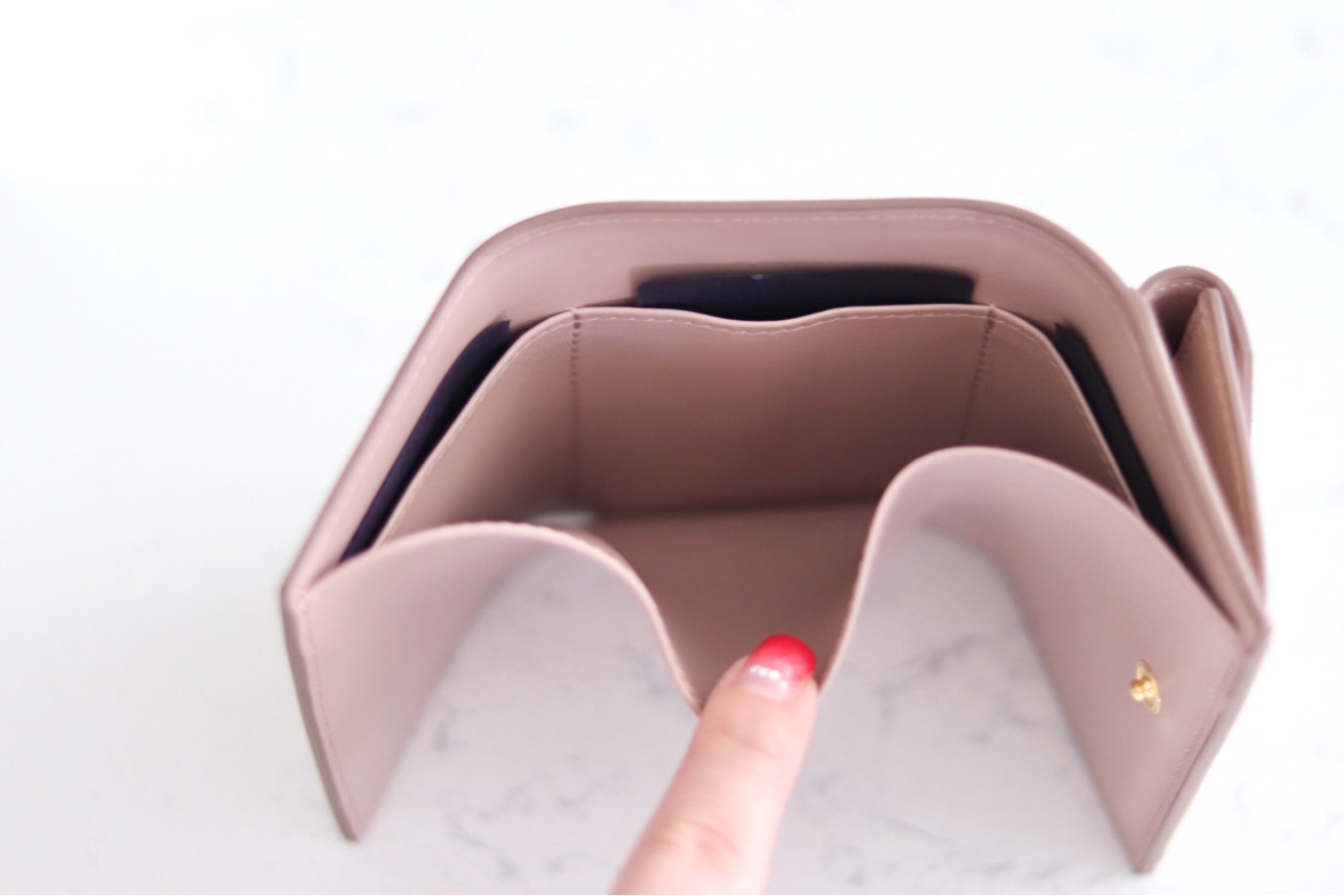 こちらの3つ折り財布、小銭入れにカードも入れられるし...↓