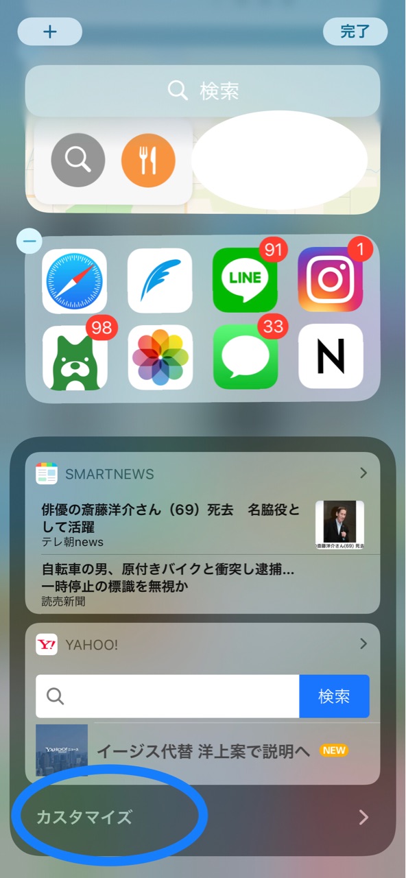 また、1番下の”編集”をクリックして、1番下にスワイプし、”カスタマイズ”という文字をクリックすると... ↓